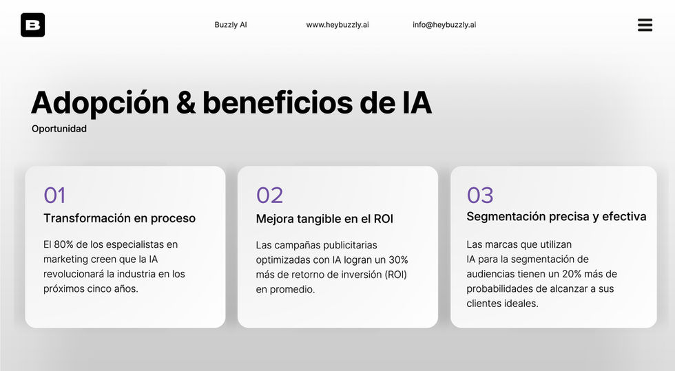 Buzzly puede reducir hasta un 75% del tiempo operativo y aumentar el ROI hasta en un 30%.